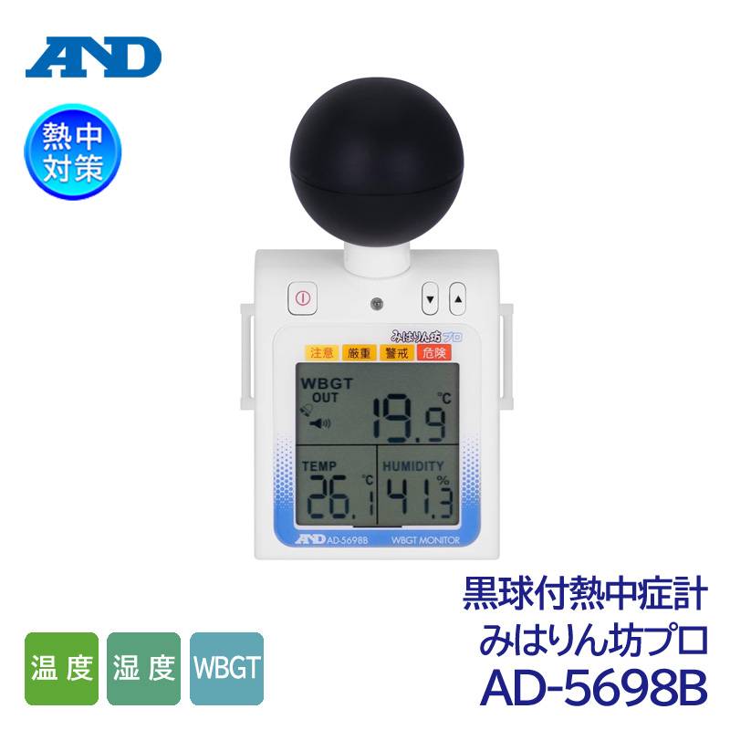 A&D 黒球付熱中症計 みはりん坊プロ AD-5698B 熱中症指数モニター JIS B 7922:2023適合品(温度/湿度/W...