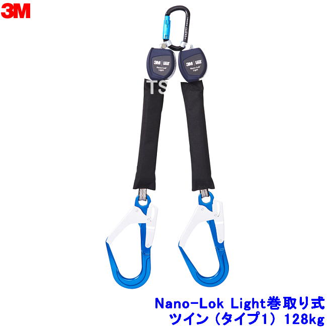 ハーネス用ダブルランヤード 3M Nano-Lok Light ナノロック巻取り式 ツイン (タイプ1) 128kg 【安全帯 ス...