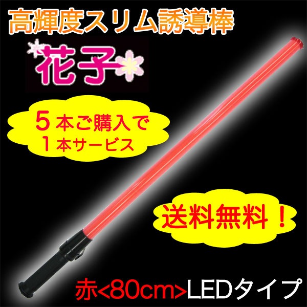 誘導棒『花子』赤ロング<80cm>5本+1本サービス 誘導棒 交通誘導 誘導 警備 夜間 LED 誘導灯 安全作業 工事現場 駐車...