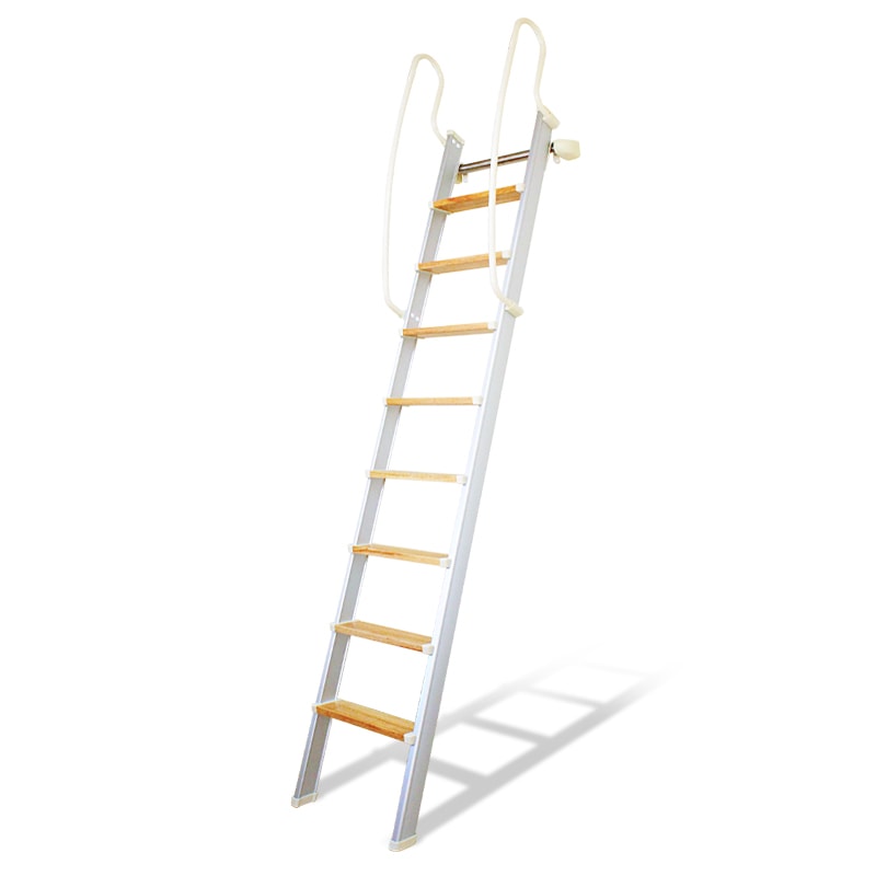 木・アルミ混合【ハイブリッドラダー】 アルミ製ロフトはしご 側面手すり仕様