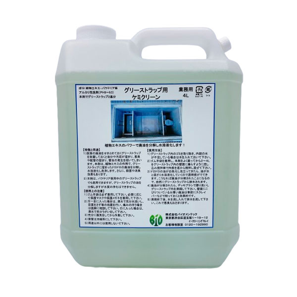 グリーストラップ用 ケミクリーン バイオメンテック 4L缶 植物性バイオ洗剤 アルカリ性 廃油分解 殺菌 消臭