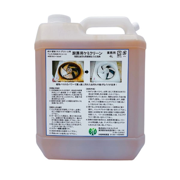 厨房用 ケミクリーン バイオメンテック 4L缶 植物性 バイオ洗剤 アルカリ性 頑固な油汚れ分解用 レンジ 換気扇