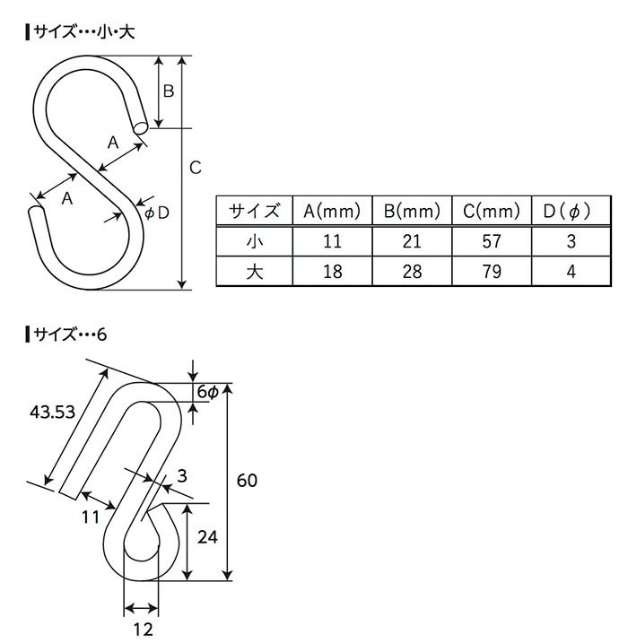 ステンレスSフック 小 [30本 (6本×5セット)]