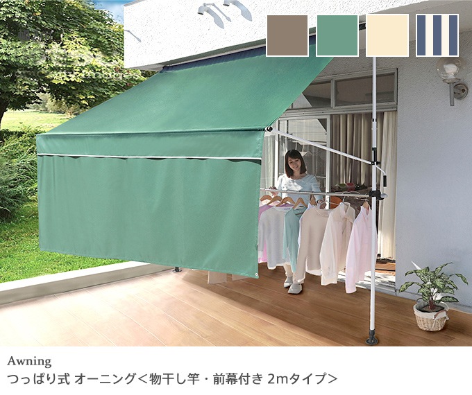 突っ張り式 日よけ 物干し竿・前幕付きオーニング(幅2mタイプ)