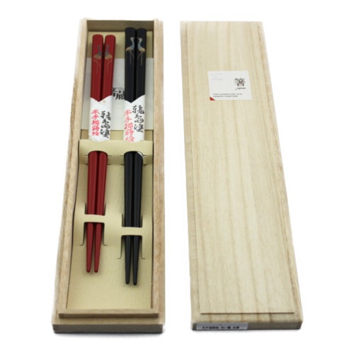 輪島塗鶴夫婦箸 乾漆(桐箱入)