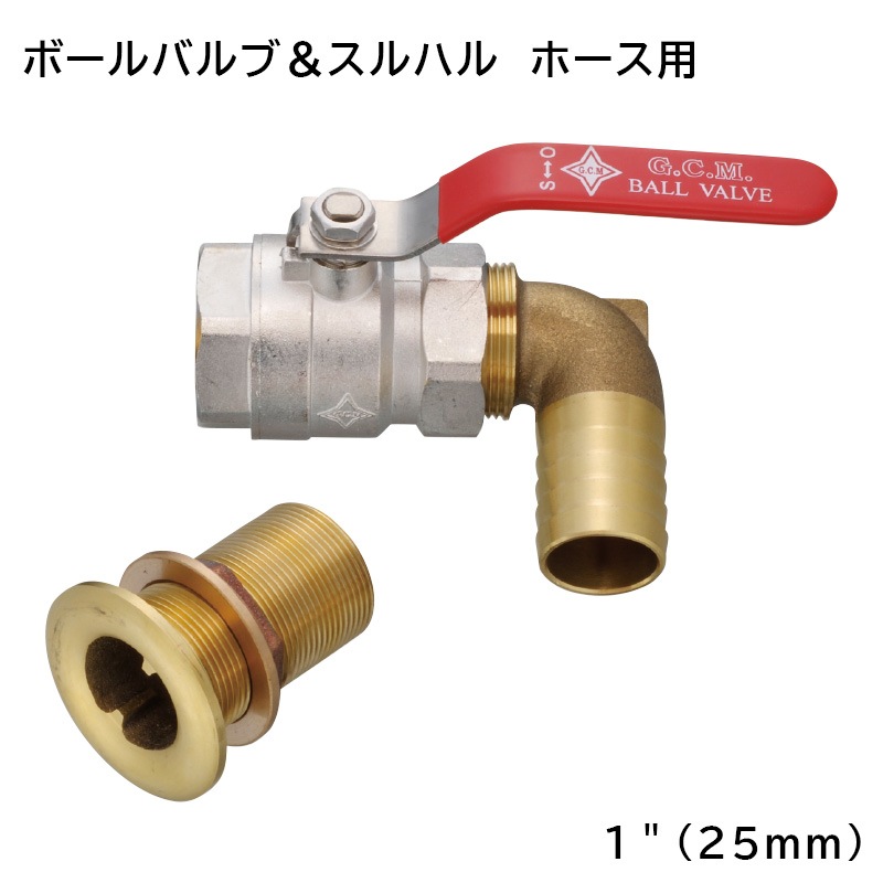 ジャブスコ ボールバルブ&スルハル 1インチ 25mm ホース用 トイレ配管用 開閉弁 吸排水口
