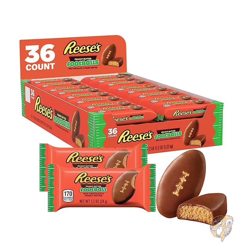 リーセス ピーナッツバターフットボール ミルクチョコレート&ピーナッツバターキャンディ 1.2オンス 34g (36個入り箱)Ca...