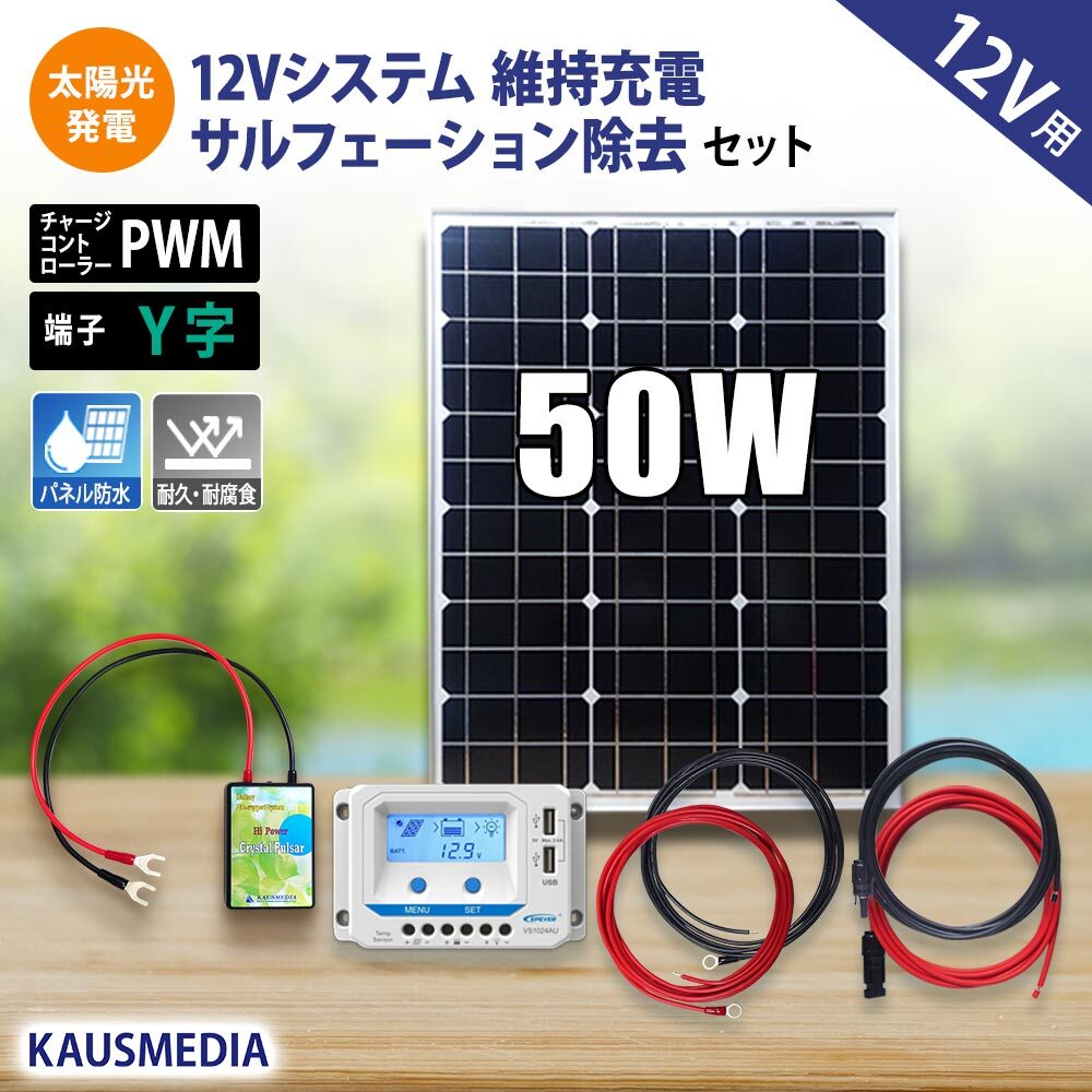 12Vシステム対応 50W ソーラー発電キット クリスタルパルサー 付 維持充電 サルフェーション除去セット MPPT 船舶 デサ...