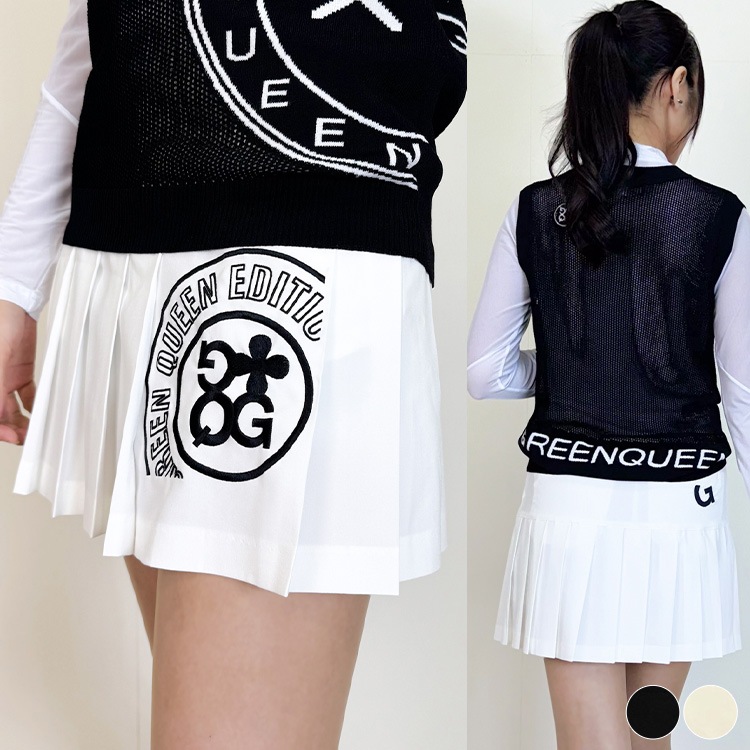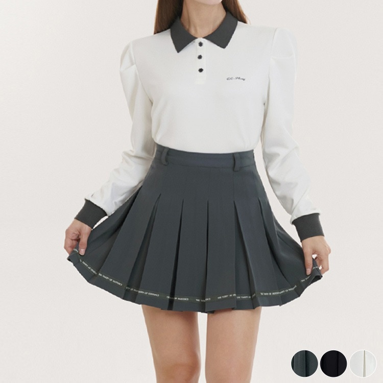 韓国ゴルフウェア レタリング刺繍 プリーツスカート