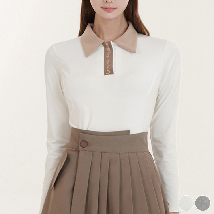 配色 レタリング 長袖 ポロシャツ 韓国ゴルフウェア