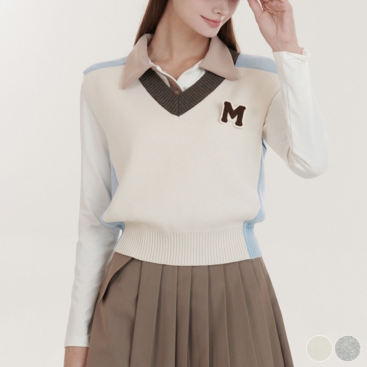 配色 プルオーバー Vネック ベスト 韓国ゴルフウェア