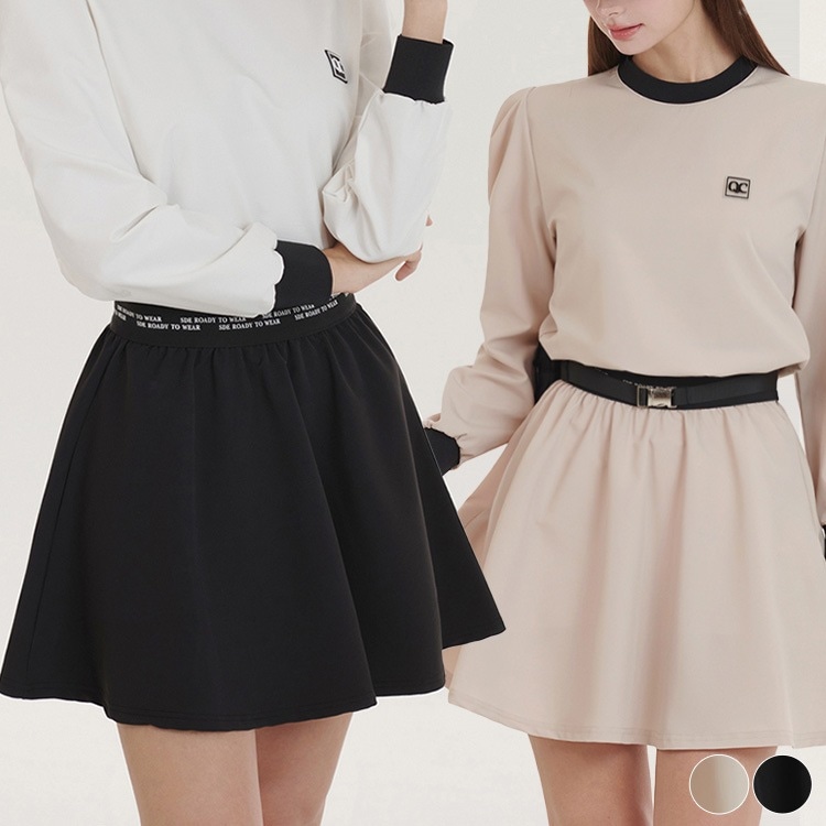 レタリング ウエストゴム フレアスカート 韓国ゴルフウェア