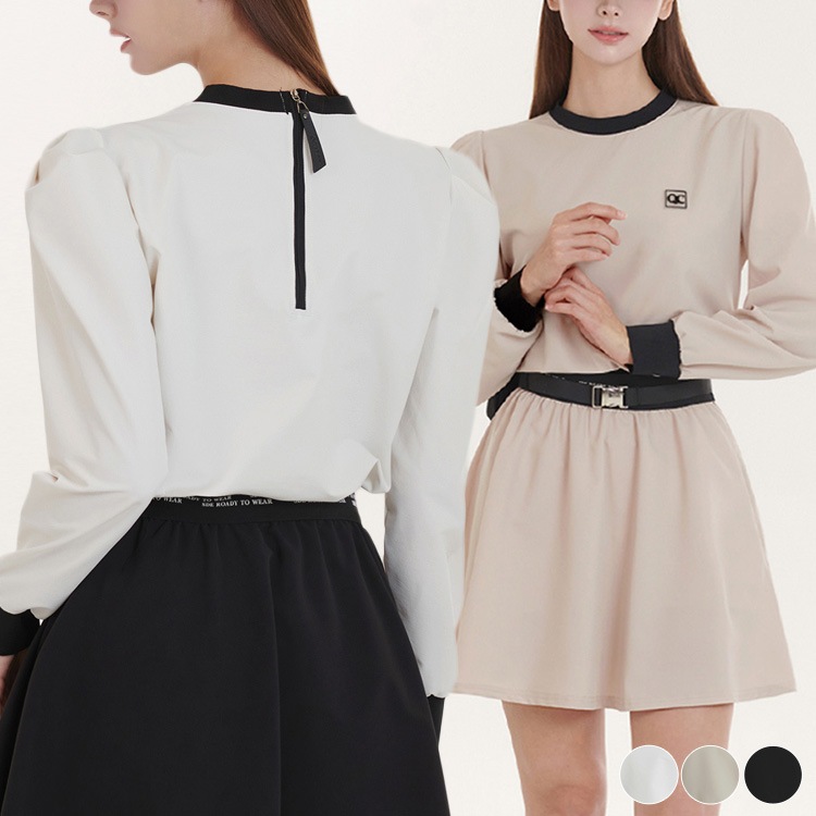 バイカラー 長袖 パフスリーブ トップス 韓国ゴルフウェア