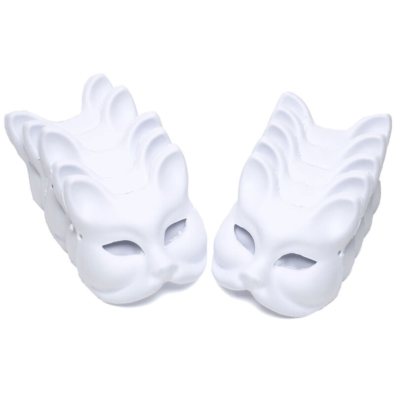 狐面 猫面 お面 狐 猫 マスク コスプレ ペイント 無地 白 おめん 紙パルプ製 半面 10枚セット