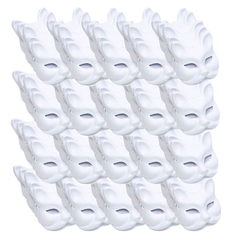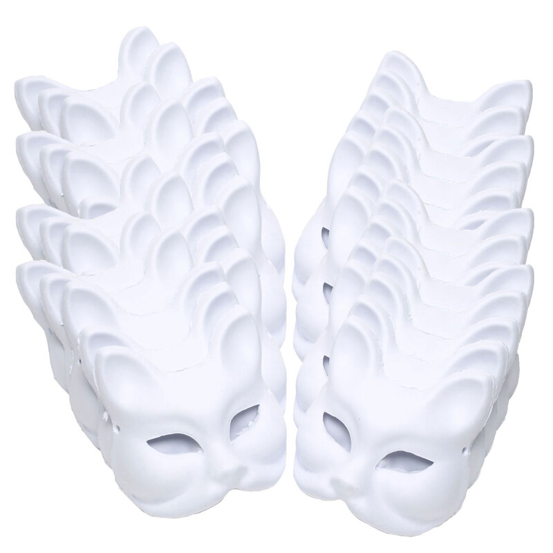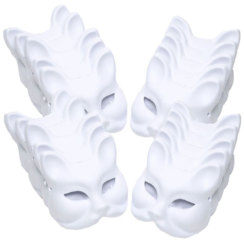 狐面 猫面 お面 狐 猫 マスク コスプレ ペイント 無地 白 おめん 紙パルプ製 半面 20枚セット