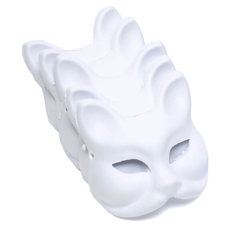 狐面 猫面 お面 狐 猫 マスク コスプレ ペイント 無地 白 おめん 紙パルプ製 半面 5枚セット