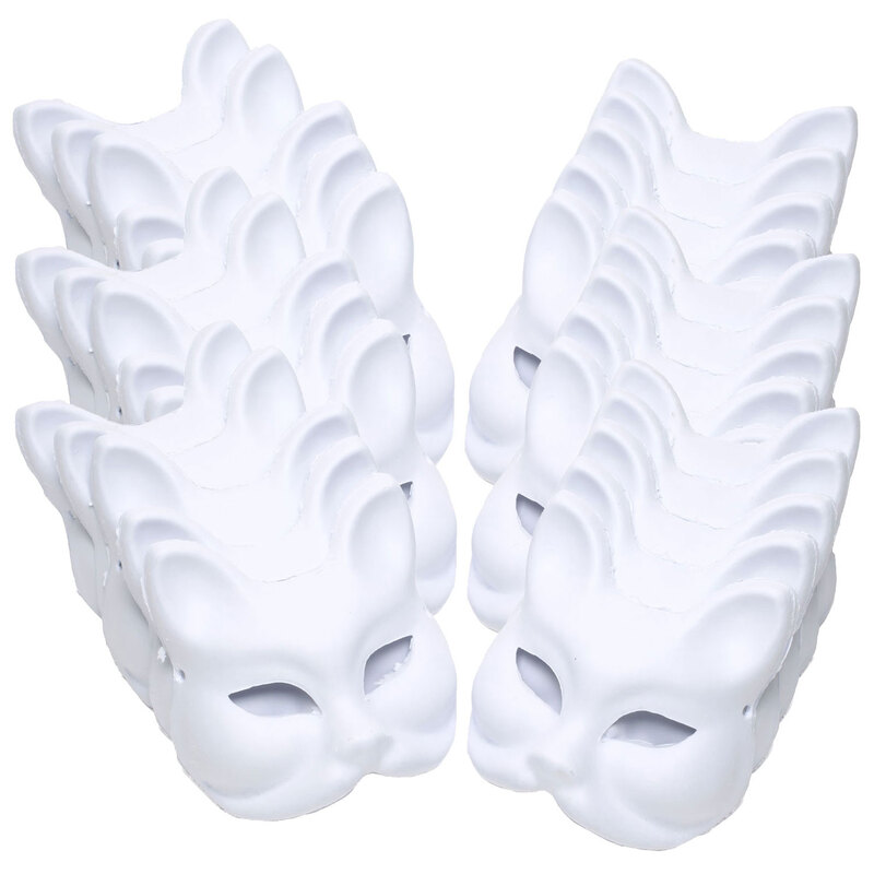 狐面 猫面 お面 狐 猫 マスク コスプレ ペイント 無地 白 おめん 紙パルプ製 半面 30枚セット