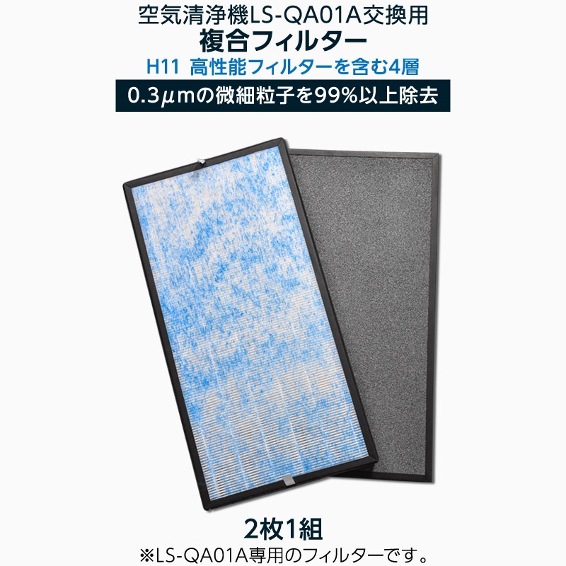 空気清浄機 LS-QA01A用 H11 複合 高性能 フィルター 2枚セット