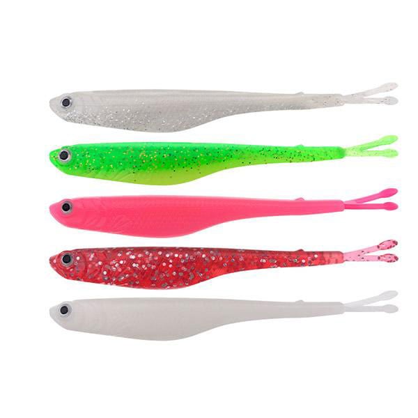 ルアー ソフトベイト フォークテール付き 各色5個セット ラメ入り スイムベイト ソフトフィッシング TPR素材 リアル ジギング...