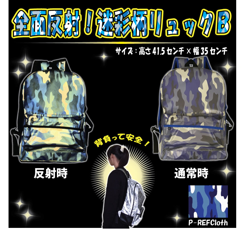 【2017年冬 NEW】 迷彩柄 全面反射リュックサック H1 迷彩柄B ブルー