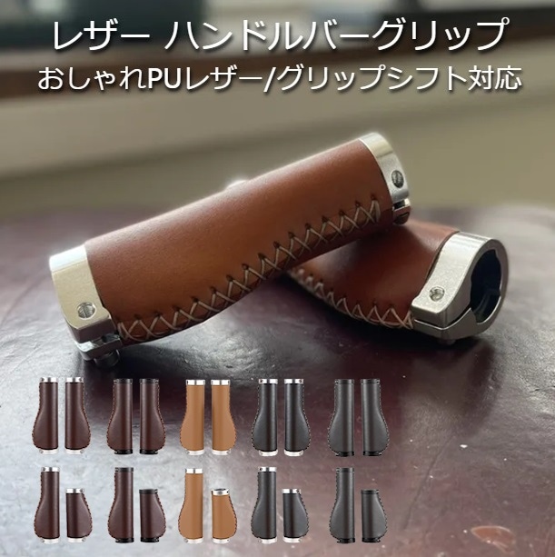 PUレザー ハンドルバーグリップ おしゃれ ミニベロ クロスバイク 自転車のグリップ交換 グリップ切り替え 合皮 合成皮革