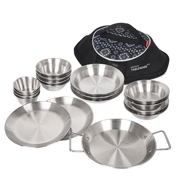 アウトドア用品 登山 釣り キャンプグッズ ステンレス食器 セット 18点セット コンパクト収納 皿 ボウル 鍋 バーベキュー ポ...