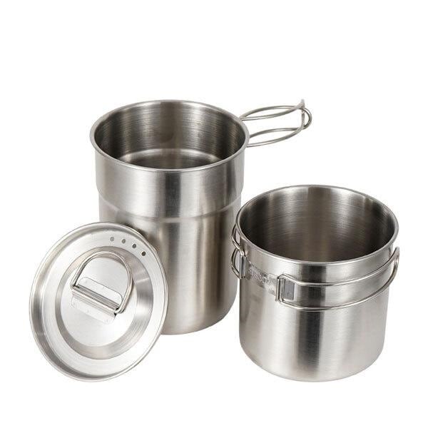 アウトドア用品 キャンプ 登山 釣り クッキングカップポット 折りたたみ式 ハンドル ポット 2個セット 蓋付き ステンレス マグ...