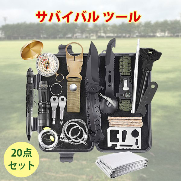 サバイバルツールセット 多機能ナイフ 懐中電灯 方位磁石 サバイバルシート 釣り道具 災害 登山 キャンプ 収納ボックス