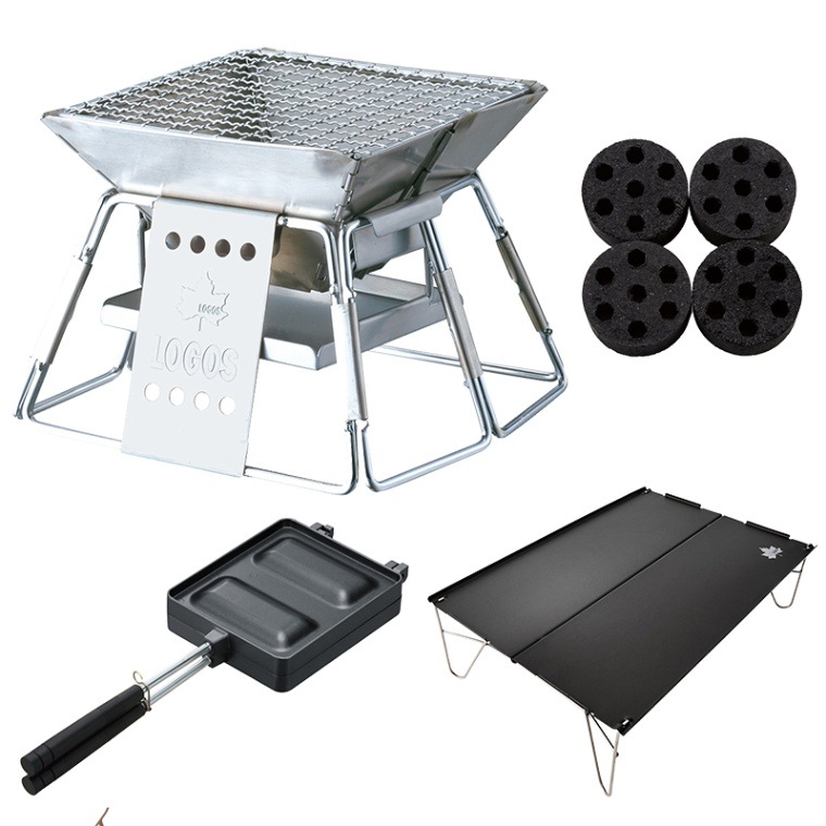 ロゴス LOGOS ピラミッドグリル・コンパクト + 軽量SOLOテーブル3625 + LOGOS ホットサンドパン-BA + エ...