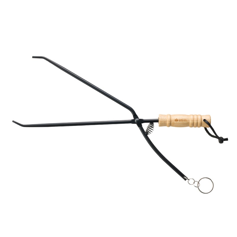 LOGOS ロゴス 楽ちん薪ばさみ / 81064222 はさみ バネ開閉 革紐付き 天然木