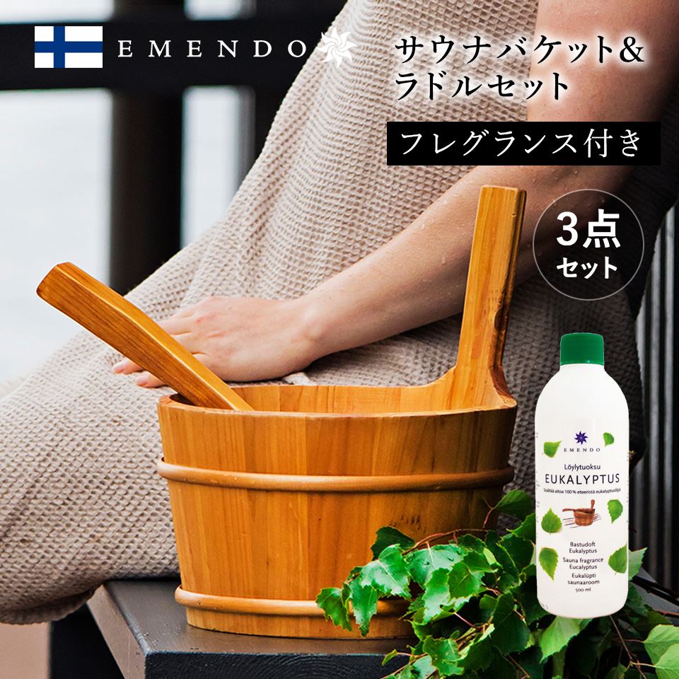 【EM-2434】EMENDO エメンド サウナ 木製バケット ラドル アロマオイル ユーカリ付 500ml ロウリュ 北欧 フィ...