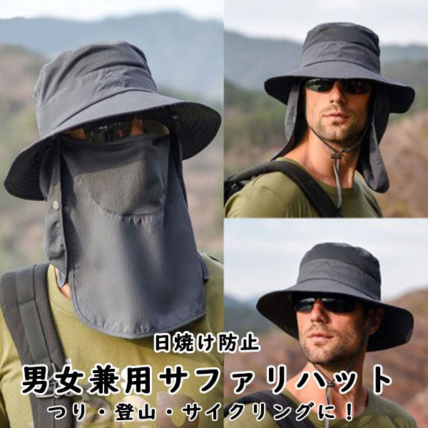 【即納】ユニセックス サファリハット フェイスカバー付き UVカット 帽子 日焼け防止 アウトドア 登山 釣り サイクリング 取り...