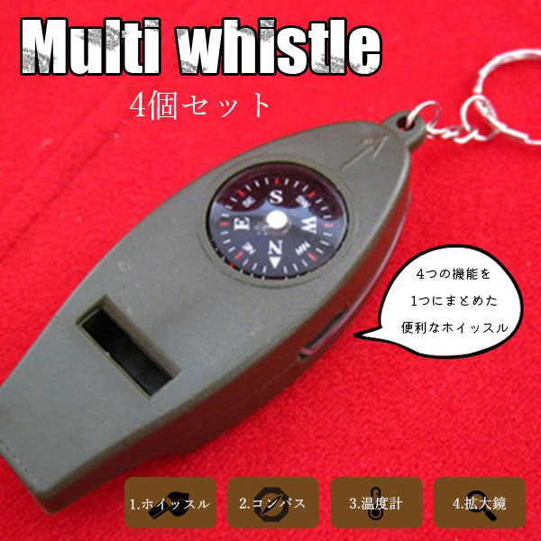【即納】多機能ホイッスル 4個セット ホイッスル コンパス 拡大鏡 温度計 防災グッズ 軽量 緊急時 アウトドア サバイバル 送料...