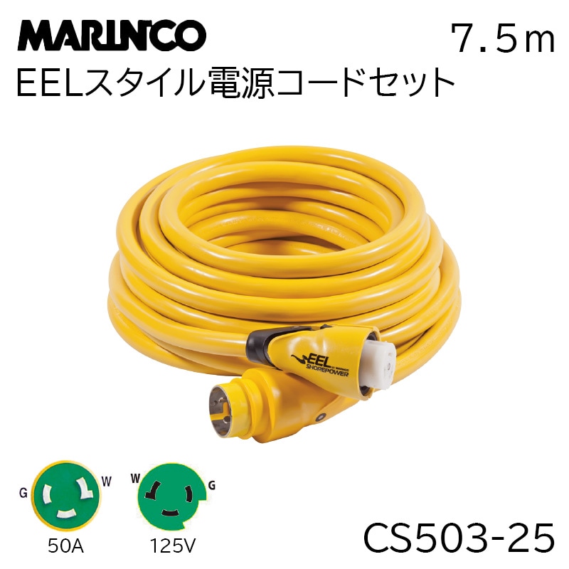 MARINCO マリンコ EEL イール スタイル電源コードセット 7.5m / 50A 125V CS503-25 陸電ケーブル