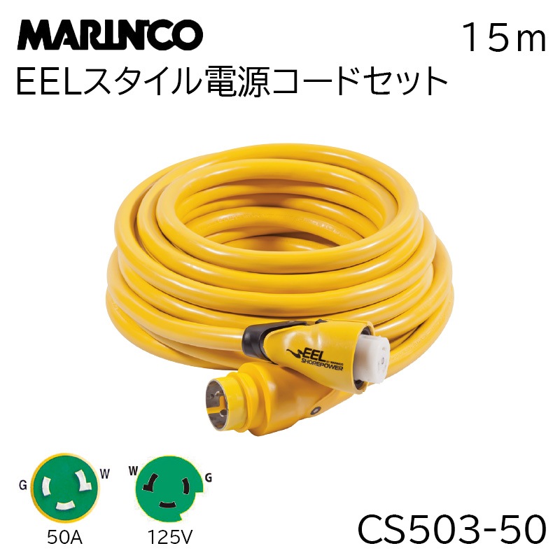 MARINCO マリンコ EEL イール スタイル電源コードセット 15m / 50A 125V CS503-50 陸電ケーブル