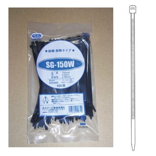 ケーブルタイ 150 x 3.4 SG-150W 100本入
