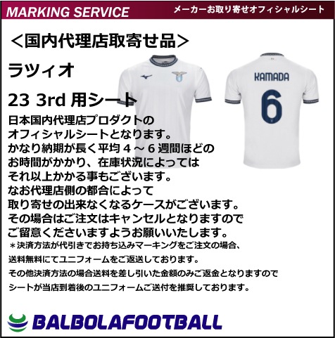 <オフィシャル>ラツィオ23アウェイ用シート