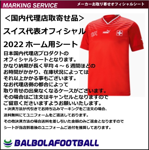 <オフィシャル>スイス代表22ホーム用シート
