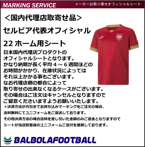 <オフィシャル>セルビア代表22ホーム用シート