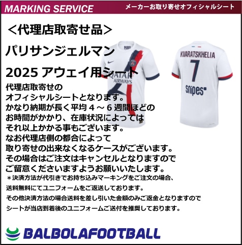 <オフィシャル>パリサンジェルマン25アウェイ用シート