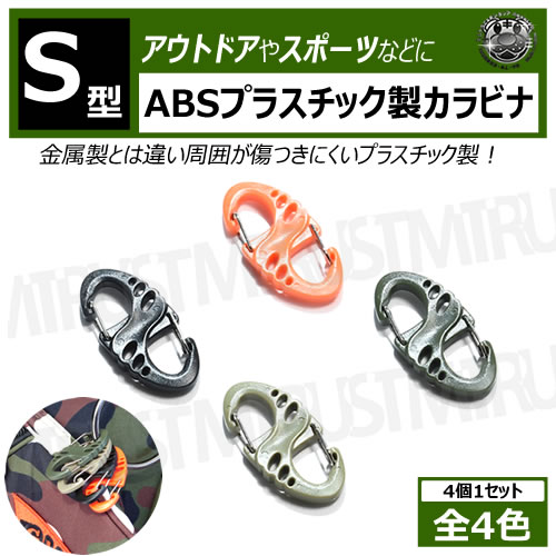カラビナ ABS プラスチック製 S型 4個1セット 全4色 ブラック オレンジ タン アーミーグリーン【S字 S字型 スポーツ ...