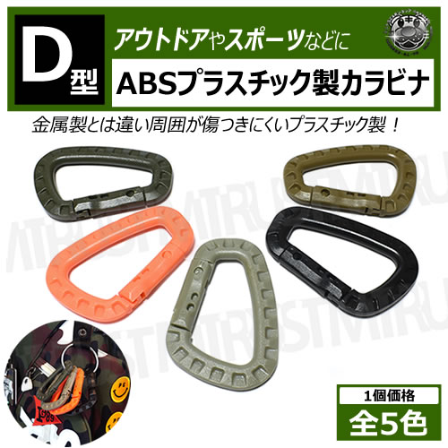 カラビナ ABS プラスチック製 D型 1個価格 全4色 ブラック オレンジ タン アーミーグリーン カーキー【スポーツ アウトド...