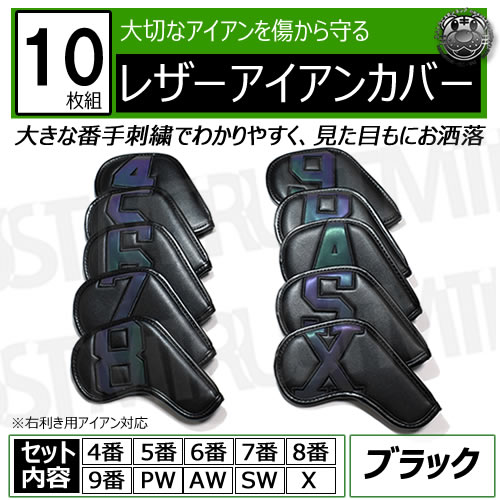 レザーアイアンカバー グラデーション ブラック 10枚セット 番手別【4 5 6 7 8 9 PW AW SW X】グラデーション...