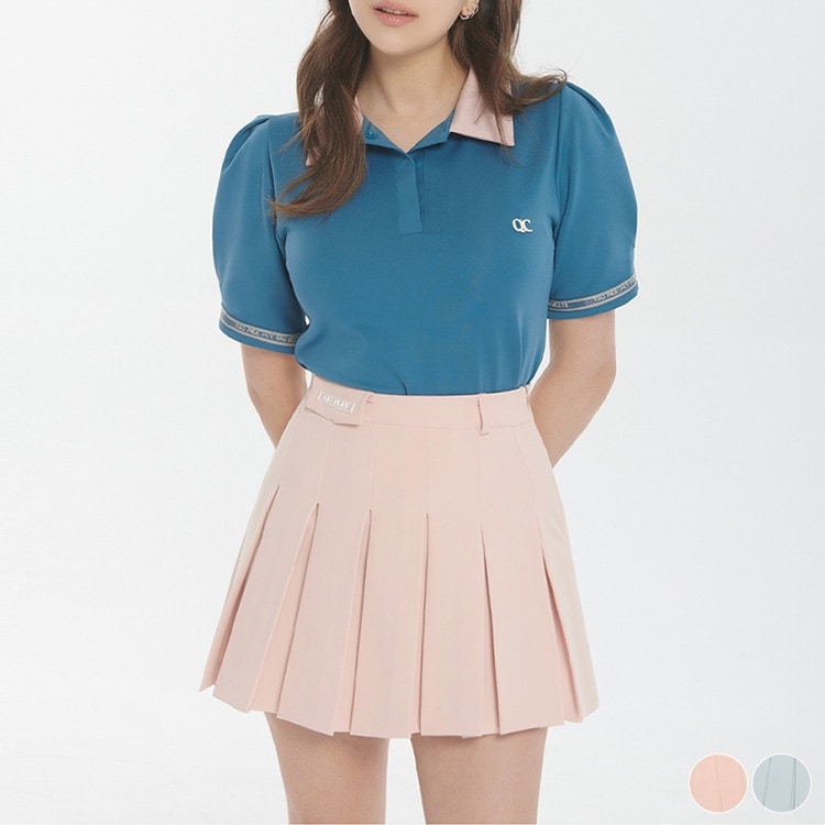 韓国ゴルフウェア 配色 パフスリーブ ポロシャツ