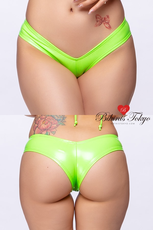 【訳あり】【BikinisTokyoオリジナル】マイクロヒップハングボトム・ツルテカビニール調ライム
