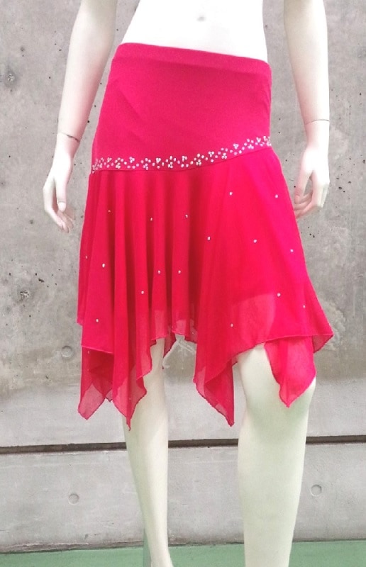 スカート 赤 ラインストーン付 ダンス用 パンツ付き