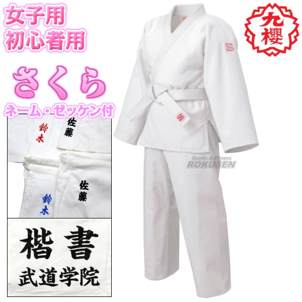 九櫻・九桜 さくら 女子用一重織柔道着(背継仕上) JSL 上下帯セット ネーム刺繍・ゼッケン付き 柔道衣 九櫻柔道着 授業用柔道...