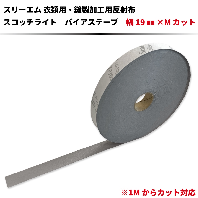 スリーエム スコッチライト反射布 バイアステープ シルバー 縫製加工用 幅19㎜×長さ1Mごとのカット
