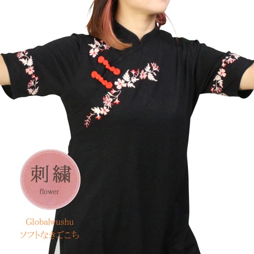 【sale】新商品 【花桃ハナモモ】ブラック ファスナー式 七分袖 太極拳 通常6,600円⇒5,980円