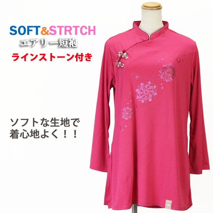 表演服『エアリー短袍』ラインストーン付き 斜開式チャイナカラー/ファスナー式/長袖/4色